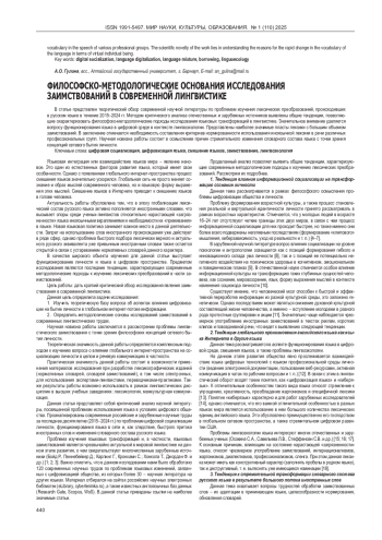19. 	Денисенко В.Н., Чжан К. Заимствованное компьютерное и сетевое слово в русскоязычном и китайскоязычном коммуникативном пространстве Интернета. Вестник Российского университета дружбы народов. Серия: Теория языка. Семиотика. Семантика. 2018: 911-925. 20. 	Иванова Н.К. Современный русскоязычный научно-образовательный дискурс: особенности семантизации английских заимствований. Лингвориторическая парадигма: теоретические и прикладные аспекты. 2023: 135-138.