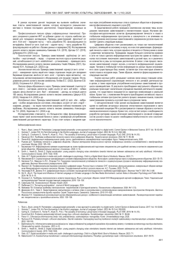 9. 	Osle J.E.T Digital socialization in media and youth: challenges to psychology. Child in a Digital World: Book of Abstracts. Moscow, 2023: 71. 10. 	Максимович В.А. Социокультурные трансформации в условиях информационного общества. Философия и гуманитарные науки в информационном обществе. 2021: 55-70.