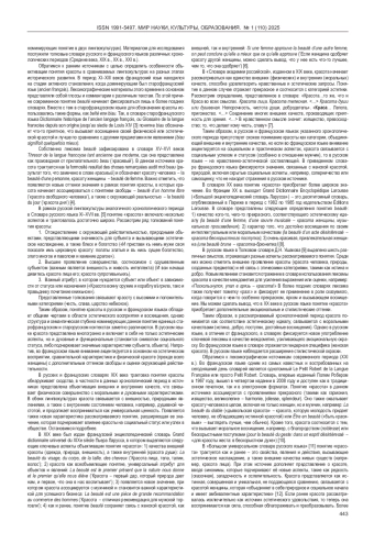 В данной статье рассматриваются особенности толкования понятия красоты в русском и французском языках, отражающие динамику семантических изменений ключевых лексем красота и beaute. В результате анализа русских и французских лексикографических источников разных хронологических периодов прослеживается расширение и усложнение понятия «красота», выделяются конкретные объекты и явления, выступающие в качестве эталонов для объективации данного понятия. Устанавливается следующая закономерность: в ранних источниках понятие красоты как в русском, так и во французском языках соотносилось преимущественно с физической красотой и гармонией, в последующие периоды оно становится отражением и внутреннего (нравственного и духовного) совершенства. Определено, что в русской лингвокультуре, по сравнению с французской, красота представляет собой комплексное и многослойное понятие, сочетающее внешние и внутренние качества. Сделан вывод о трансформации понятия на разных этапах его исторического развития. Отмечено, что отдельные признаки понятия красоты в обеих лингвокультурах уходят в прошлое, появляются новые, обусловленные историческими, социально-культурными изменениями, ролью идеалов и символов в конкретной культуре.