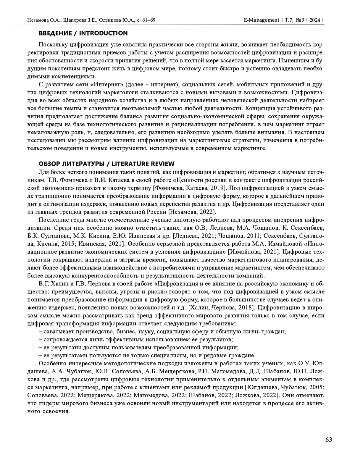 7. Ложкова Ю.Н. О трендах в маркетинге в эпоху цифровизации. Экономика XXI века: инновации, инвестиции, образование. 2022;4(10):151-152.