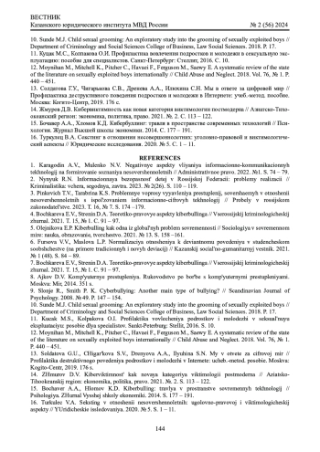 2. 	Нынюк Р.Н. Информационная безопасность детей в Российской Федерации: проблемы реализации // Криминалистика: вчера, сегодня, завтра. 2023. № 2 (26). С. 110 - 119. EDN: GCLRQW