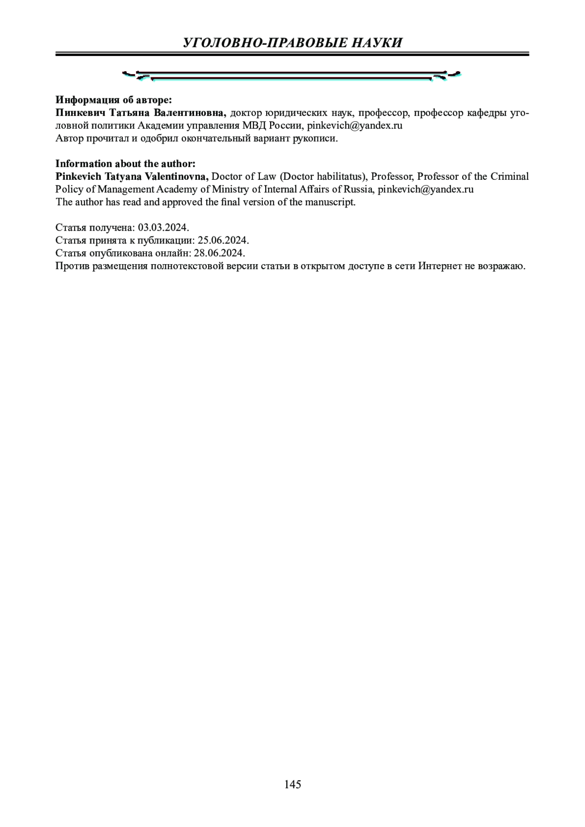 3. 	Пинкевич Т.В., Тарабрина К.С. Проблемные вопросы выявления преступлений, совершаемых в отношении несовершеннолетних с использованием информационно-цифровых технологий // Пробелы в российском законодательстве. 2023. Т. 16, № 7. С. 174 -179. EDN: RYMZIH