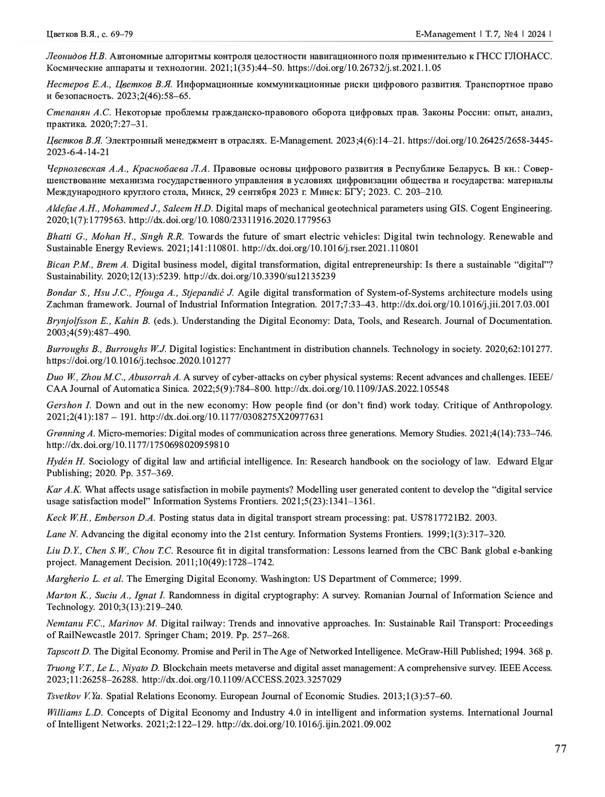 8. Цветков В.Я. Электронный менеджмент в отраслях. E-Management. 2023;4(6):14-21. https://doi.org/10.26425/2658-3445-2023-6-4-14-21