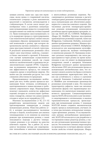 7. 	Тихомиров С. Г. Моделирование тепловых процессов при вулканизации многослойных резиновых изделий / С. Г. Тихомиров, О. В. Карманова, А. А. Маслов [и др.] // Приборы. - 2023. - № 3(273). - С. 14-19. EDN: KUQGAV