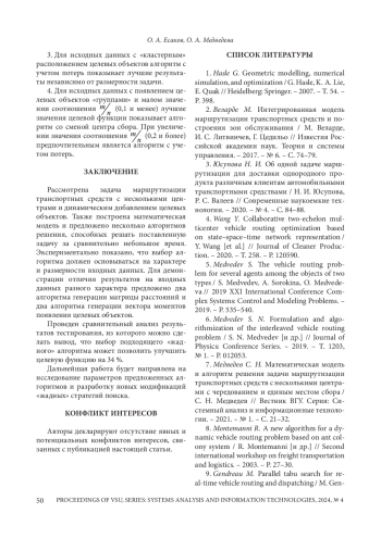 4. 	Wang Y. Collaborative two-echelon multicenter vehicle routing optimization based on state-space-time network representation / Y. Wang [et al.] // Journal of Cleaner Production. - 2020. - Т. 258. - P. 120590. EDN: AZZZDI