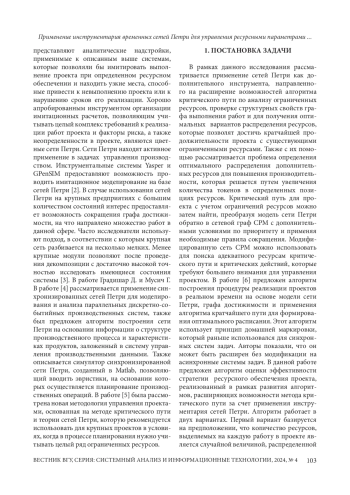 Эффективность проекта во многом зависит от используемой стратегии управления ресурсными параметрами задач проекта, которые могут выполняться последовательно и параллельно. Распределение ресурсов может носить детерминированный и стохастический характер, но на практике проекты, как правило, реализуются в условиях риска и неопределенности, поэтому в процессе планирования ресурсного обеспечения проекта нужно учитывать факторы риска и неопределенности, которые могут носить эндогенный (внутренний организационный) и экзогенный (внешний) характер. Для моделирования влияния на проект факторов риска и неопределенности, а также оценки эффективности используемой стратегии ресурсного обеспечения можно использовать инструментарий имитационного моделирования, удовлетворяющий определенным требованиям адаптивности и возможности реализации обратной связи. Подобный инструментарий имитационного моделирования можно построить на базе аппарата сетей Петри. Цель исследования заключается в разработке алгоритма имитационного моделирования процесса выполнения проекта при определенной стратегии ресурсного обеспечения, базирующегося на построении модели данного процесса в виде временной сети Петри. На начальном этапе строится сетевой граф проекта и на основании средних или зафиксированных по некоторому принципу значений вычисляется критический путь, критическое время выполнения всего проекта, и временные параметры для каждого события и каждой работы. По сетевому графу с рассчитанными значениями временных параметров реализации работ строится цветная временная сеть Петри, переходы маркеров в которой осуществляются при выполнении определенного блока временных и ресурсных ограничений. Моделирование процесса выполнения работ на основе цветных временных сетей Петри позволит оценить эффективность управления ресурсами проекта.