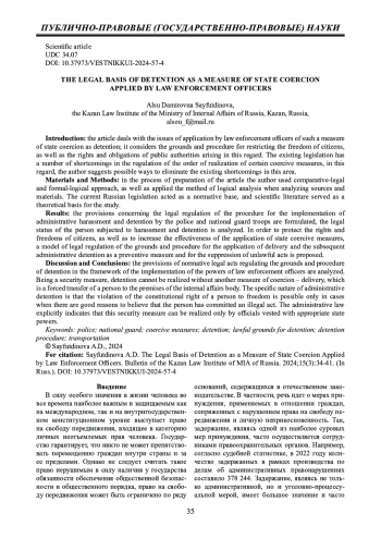Введение: в статье рассматриваются вопросы применения сотрудниками правоохранительных органов задержания как меры государственного принуждения, основания и порядок ограничения свободы граждан, а также возникающие в связи с этим права и обязанности представителей государственной власти. Автор предлагает возможные способы устранения законодательных коллизий, связанных с регламентацией порядка реализации отдельных принудительных мер.