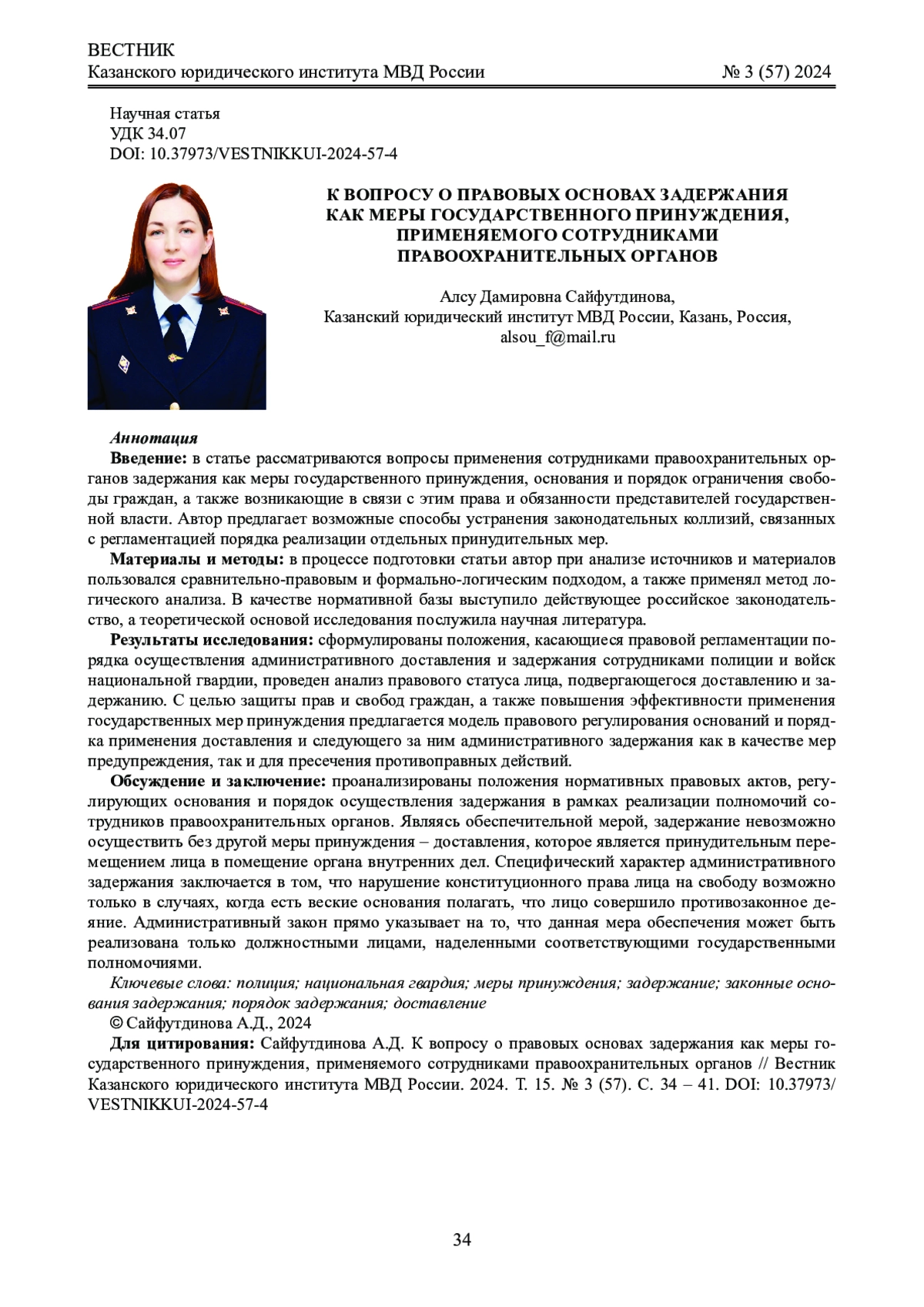 6. 	Десятова О.В. К вопросу о полицейском задержании // Юридическая наука и правоохранительная практика. 2021. № 4 (58). URL: https://cyberleninka.ru/article/n/k-voprosu-o-politseyskom-zaderzhanii (дата обращения: 05.09.2024). EDN: LURRSQ