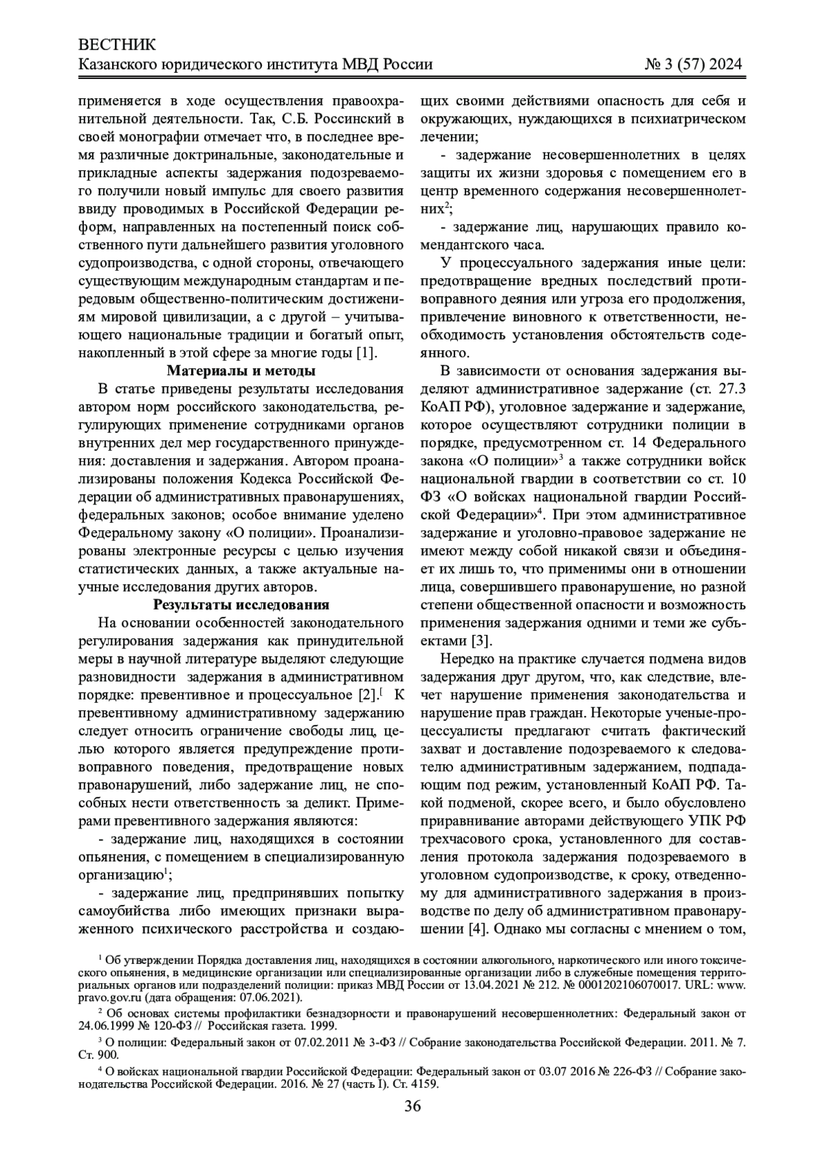 3. 	Ялов А.М. Отличие уголовно-правового задержания от административного и уголовно-процессуального // Государственная служба и кадры. 2022. № 1. URL: https://cyberleninka.ru/article/n/otlichie-ugolovno-pravovogo-zaderzhaniya-ot-administrativnogo-i-ugolovno-protsessualnogo (дата обращения: 05.09.2024). EDN: IHIFWB