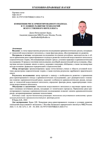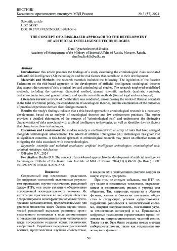 Введение: в статье представлены результаты исследования криминологических рисков, исходящих от технологий искусственного интеллекта, а также факторы риска, обусловливающие их развитие.