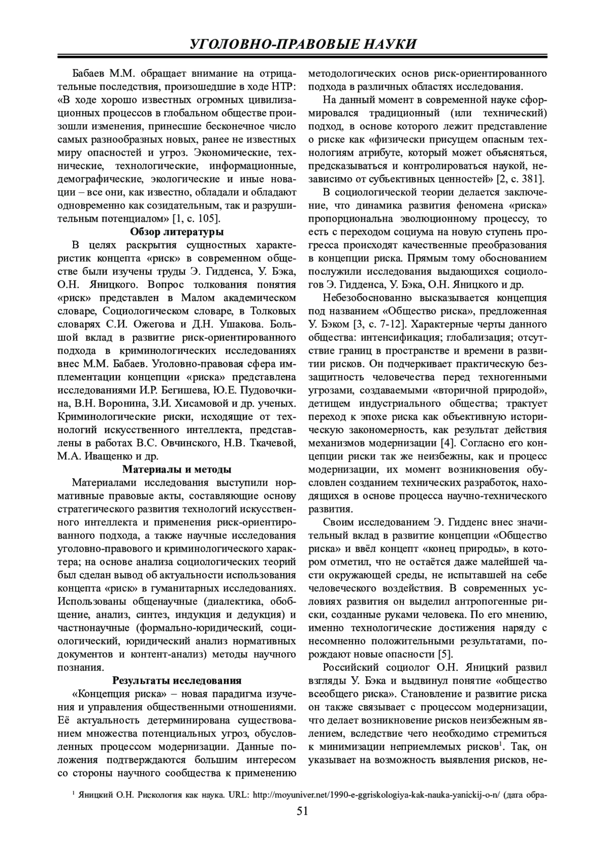 11. Бабаев М.М., Пудовочкин Ю.Е. Феномен риска в контексте профилактической политики (криминальная рискология) // Вестник Санкт-Петербургского университета. Право. 2019. Т. 10, № 1. С. 136-148. DOI: 10.21638/spbu14.2019.110 EDN: PPNJWZ