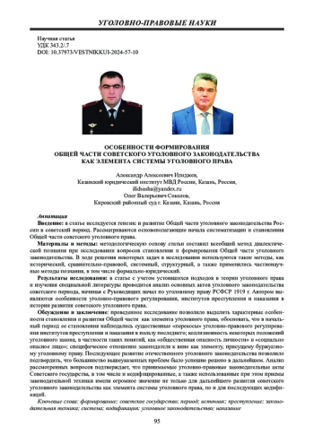 Материалы и методы: методологическую основу статьи составил всеобщий метод диалектической познания при исследовании вопросов становления и формирования Общей части уголовного законодательства. В ходе решения некоторых задач в исследовании используются такие методы, как исторический, сравнительно-правовой, системный, структурный, а также применялись частнонаучные методы познания, в том числе формально-юридический.