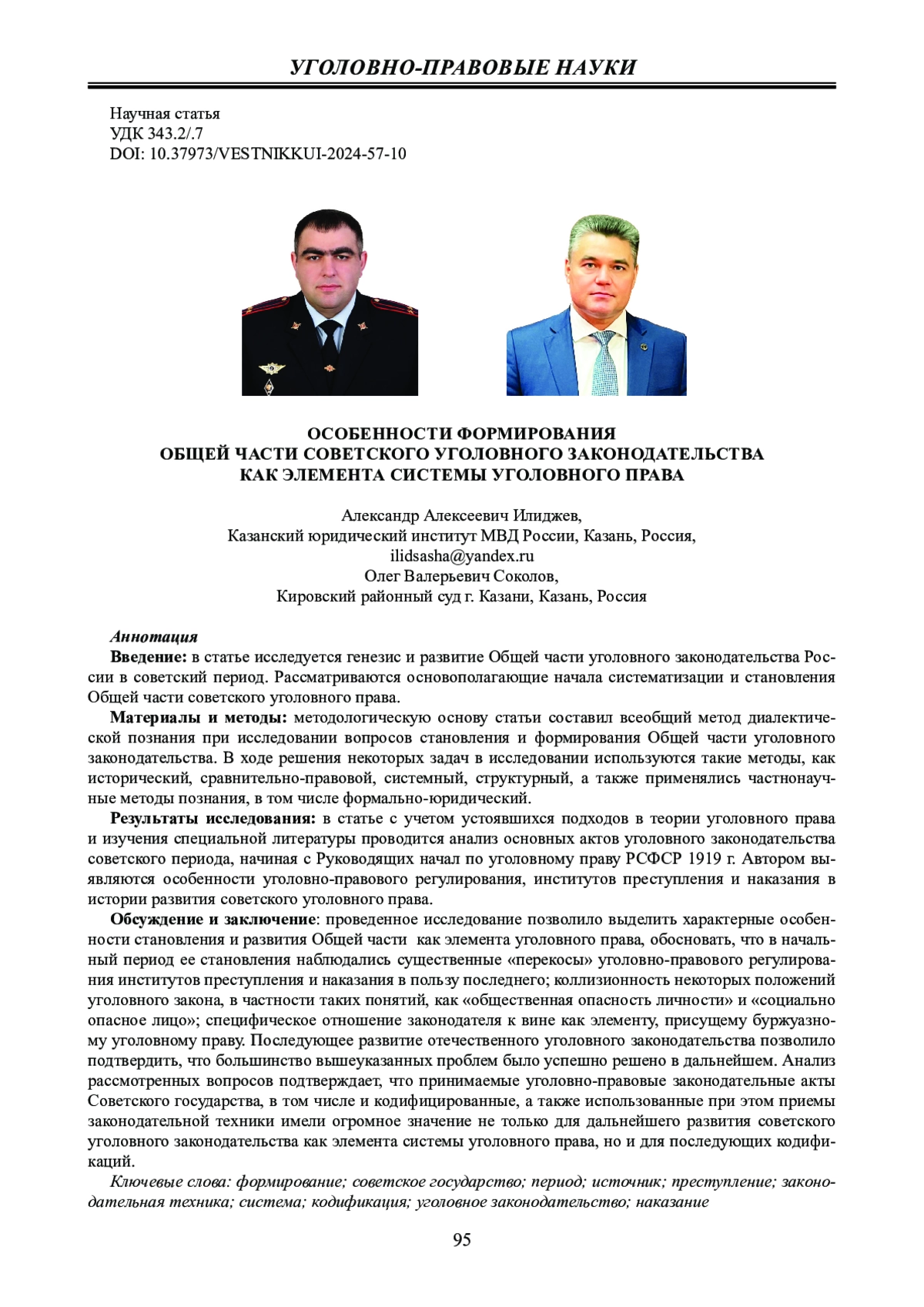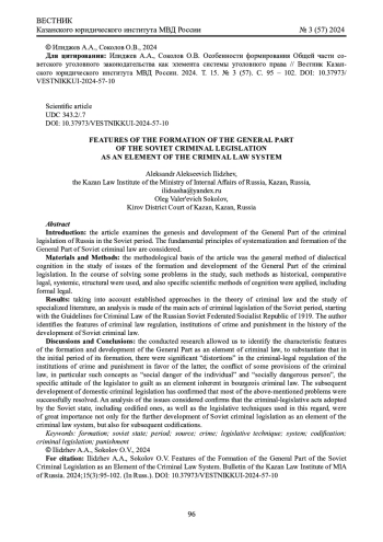 2. Илиджев А.А. Особенная часть уголовного права как отражение уголовной политики российского государства // Вестник Казанского юридического института МВД России. 2023. № 1(51). С. 67 - 74. DOI: 10.37973/KUI.2023.36.32.009 EDN: SNNKKU