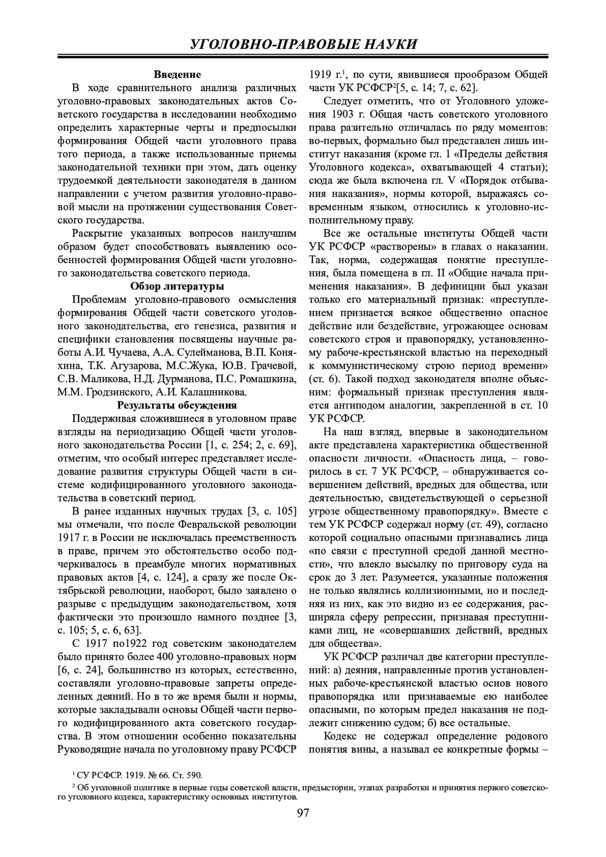 6. Чучаев А.И., Грачева Ю.В., Маликов С.В. Руководящие начала 1919 г. как прообраз Общей части УК РСФСР 1922 года // Юридический вестник Кубанского государственного университета, 2019. № 4. С. 24 - 31. EDN: PHBMJQ