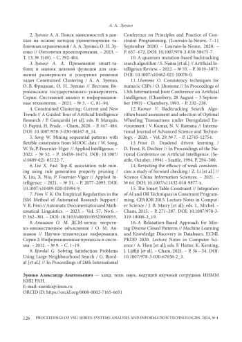 14. 	Revisiting the efficacy of weak consistencies: a study of forward checking / Z. Li [et al.] // Science China Information Sciences. - 2021. - № 64. DOI: 10.1007/s11432-018-9877-x EDN: GHQILC