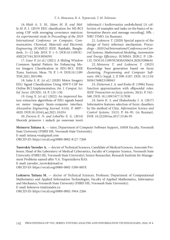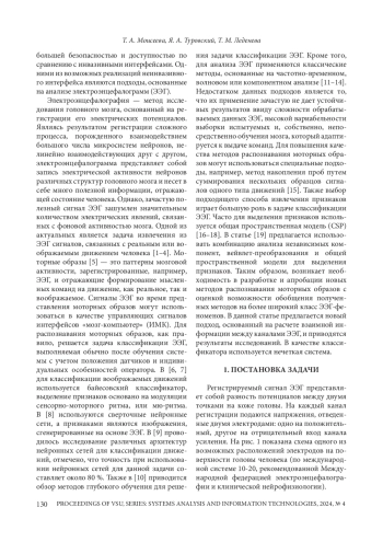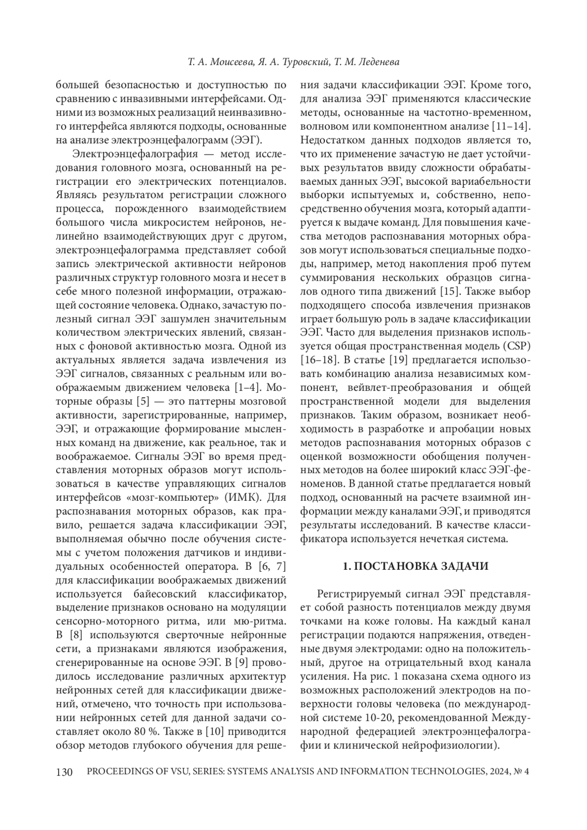 4. 	Павленко Д. В. Применение глубокого обучения в интерфейсах мозг-компьютер для распознавания движений / Д. В. Павленко, Ш. Э. Татарис, В. В. Овчаренко // Программные продукты и системы. - 2024. - Т. 37, № 2. - С. 164-169. -. DOI: 10.15827/0236235X.142.164-169 EDN: NHRMRI