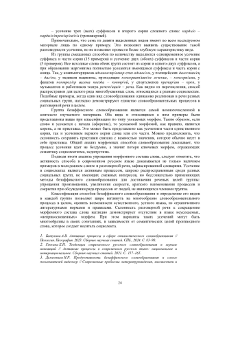 2. Геккина Е.Н. Тенденции современного русского словообразования в зеркале инноваций // Активные процессы в современном русском языке: национальное и интернациональное. Сборник научных статей. 2021. С. 157-165.