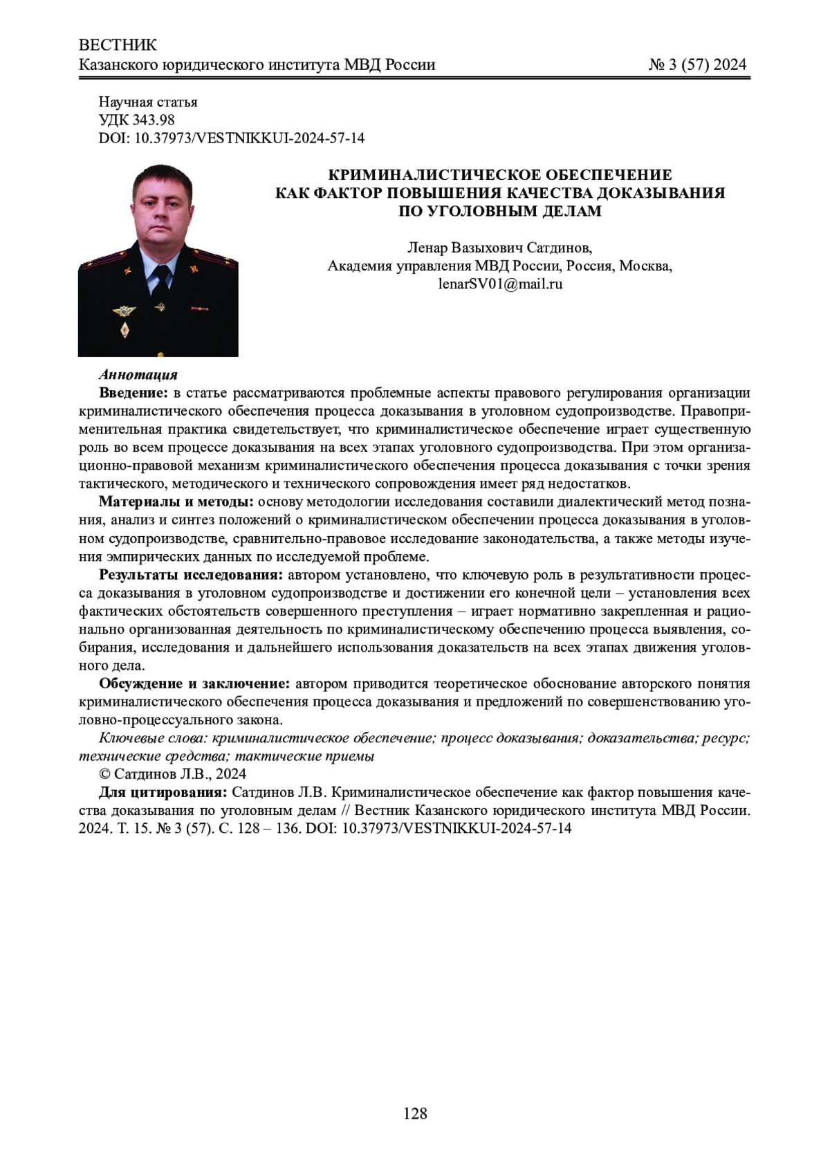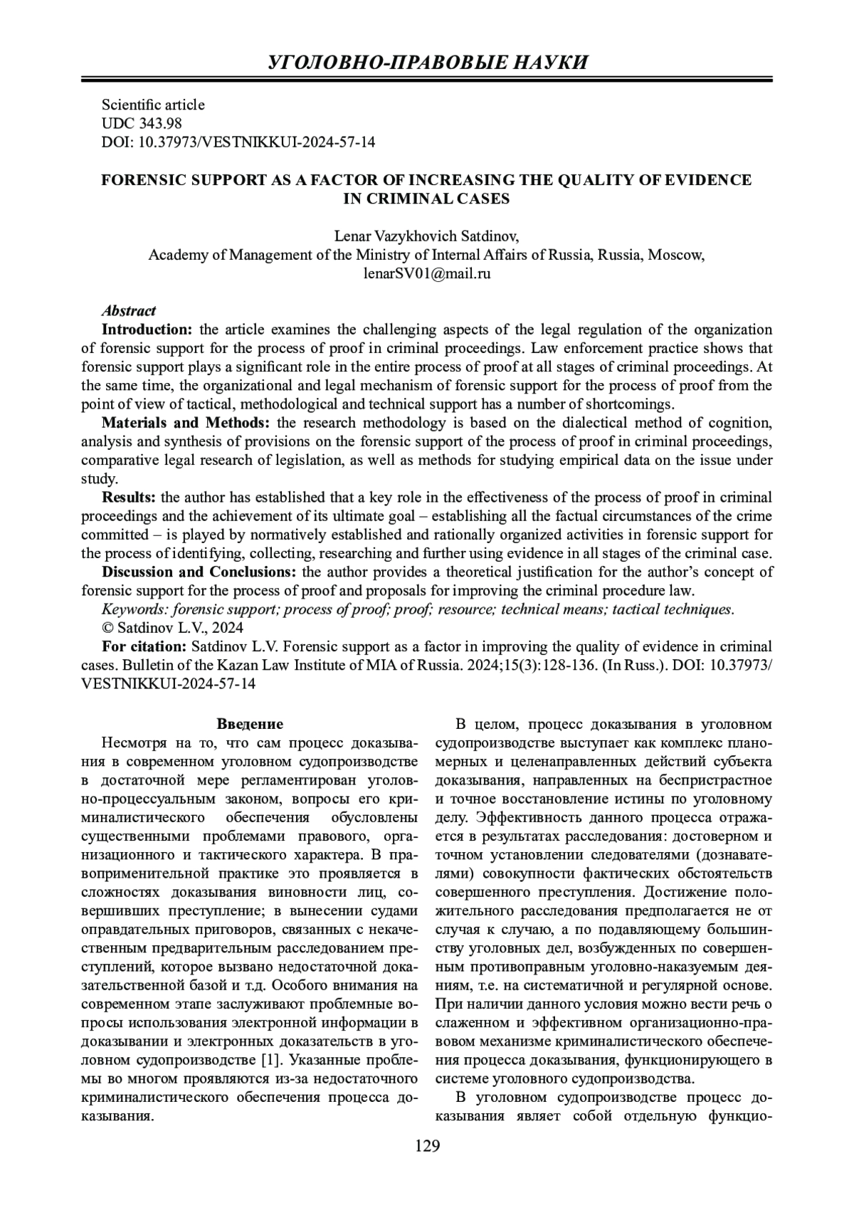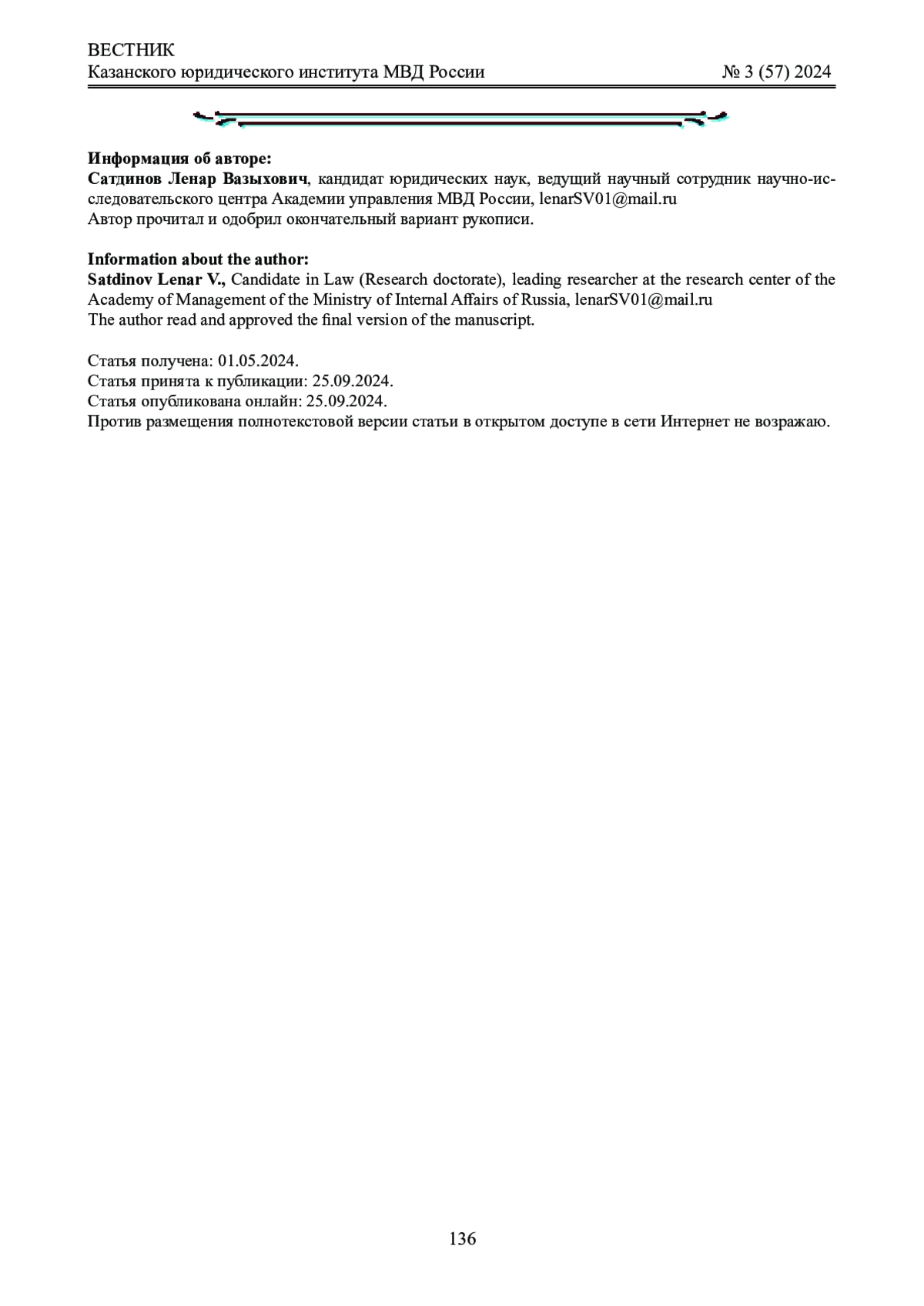 10. Сатдинов Л.В., Емельянова Е.В. Вопросы обеспечения объективности в теории и практике предварительного расследования: научно-практическое пособие. Москва: Академия управления МВД России, 2023. 156 с.