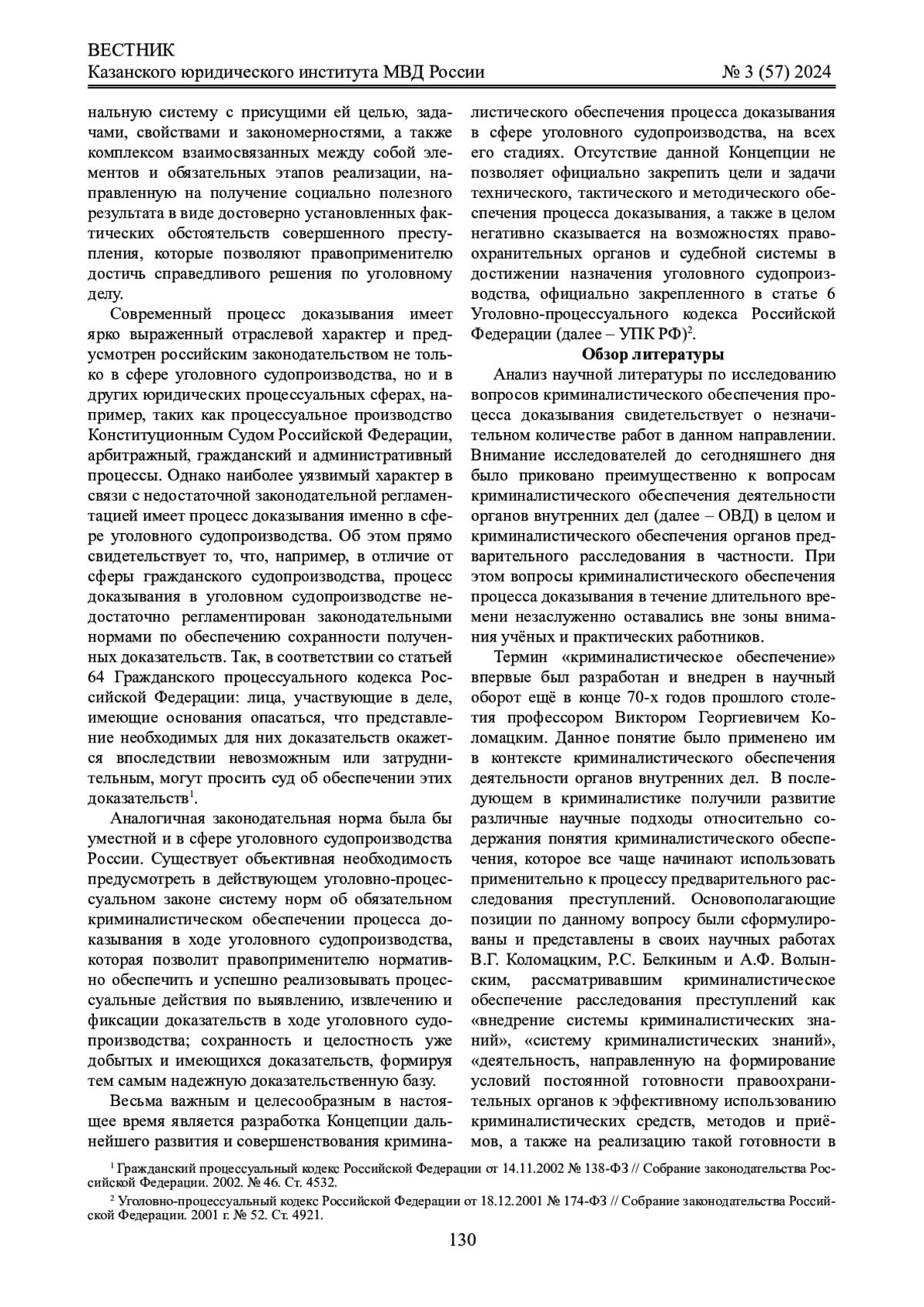 2. Митрофанова А. А. К вопросу об определении понятия “криминалистическое обеспечение” // Сибирские уголовно-процессуальные и криминалистические чтения. 2017. № 4 (18). С. 188-195. EDN: ZWBOVB
