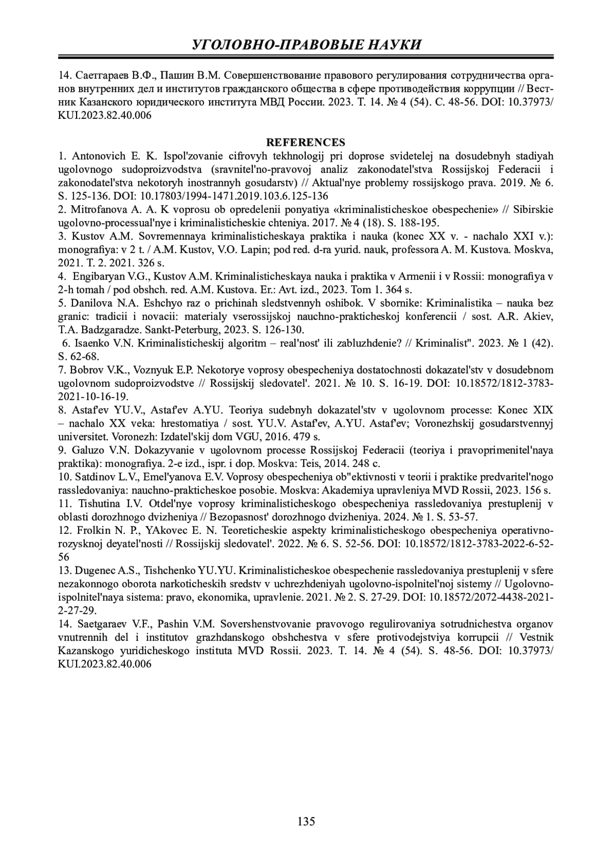 14. Саетгараев В.Ф., Пашин В.М. Совершенствование правового регулирования сотрудничества органов внутренних дел и институтов гражданского общества в сфере противодействия коррупции // Вестник Казанского юридического института МВД России. 2023. Т. 14. № 4 (54). С. 48-56. DOI: 10.37973/KUI.2023.82.40.006 EDN: UWYIQK