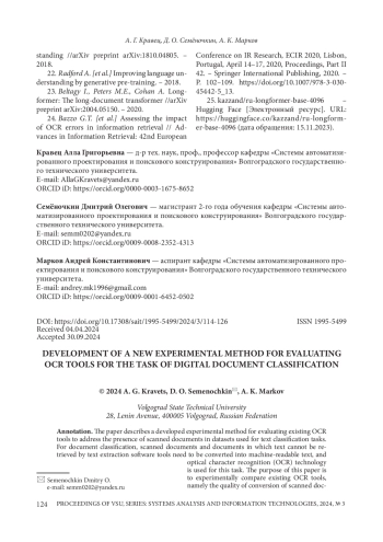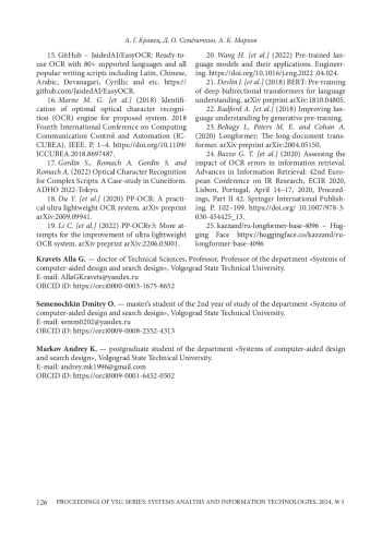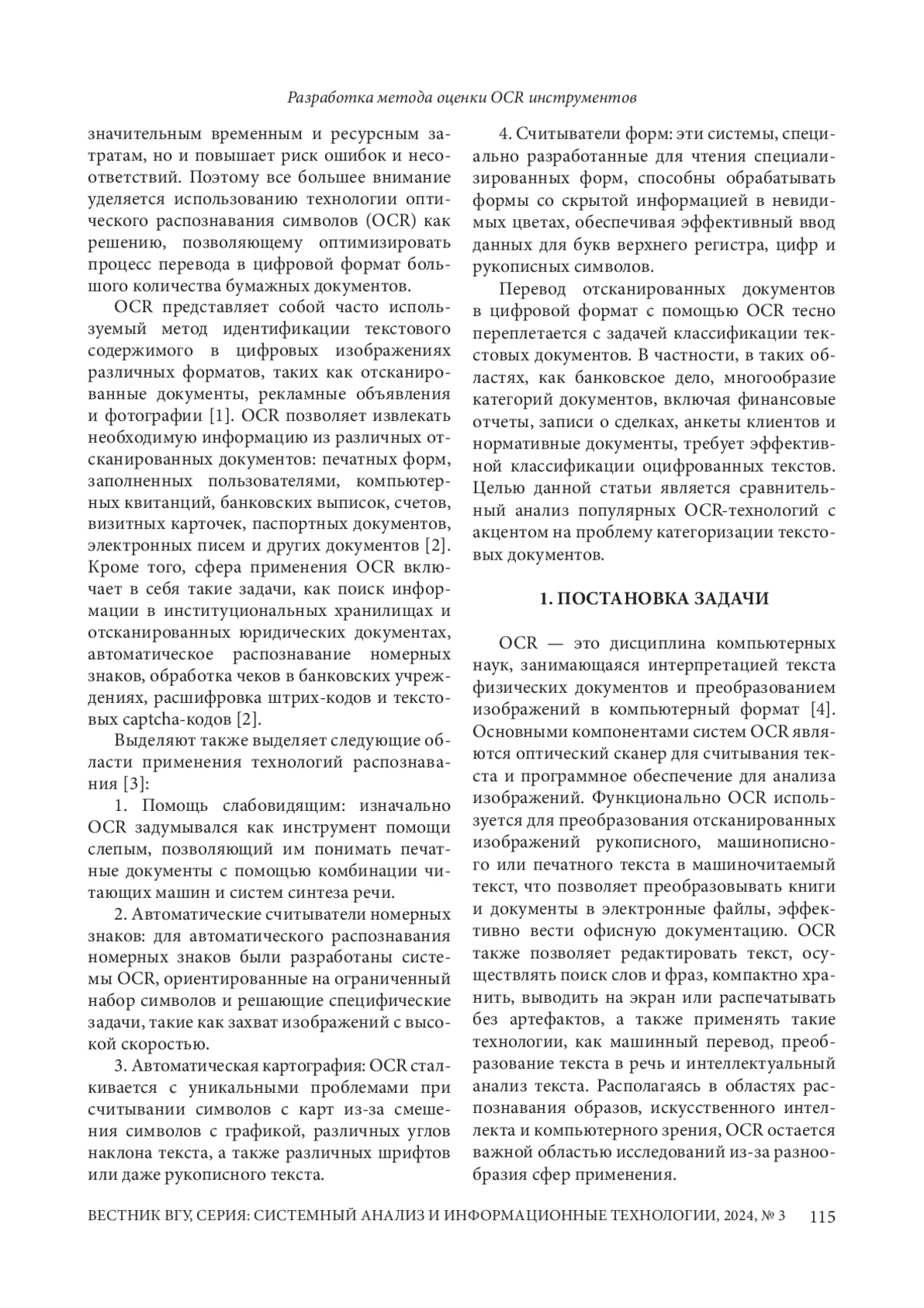 1. Jain P., Taneja K., Taneja H. Which OCR toolset is good and why: A comparative study // Kuwait Journal of Science. - 2021. - V. 48, No 2. DOI: 10.48129/KJS.V48I2.9589 EDN: ARCPBN