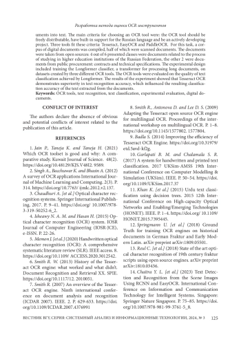 6. Smith R. W. History of the Tesseract OCR engine: what worked and what didn’t //Document Recognition and Retrieval XX. - SPIE, 2013. DOI: 10.1117/12.2010051