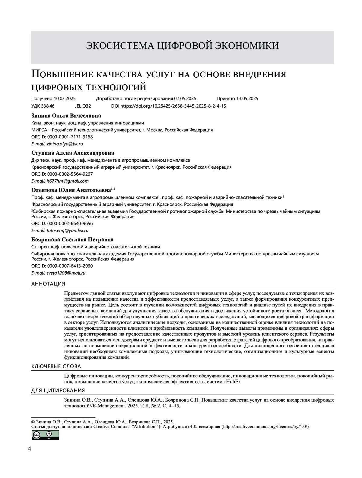 2. Зимин А.С. Пути повышения качества обслуживания потребителей на рынке рекламных услуг. Альманах «Крым». Экономика, инновации. 2024;42:23-31.