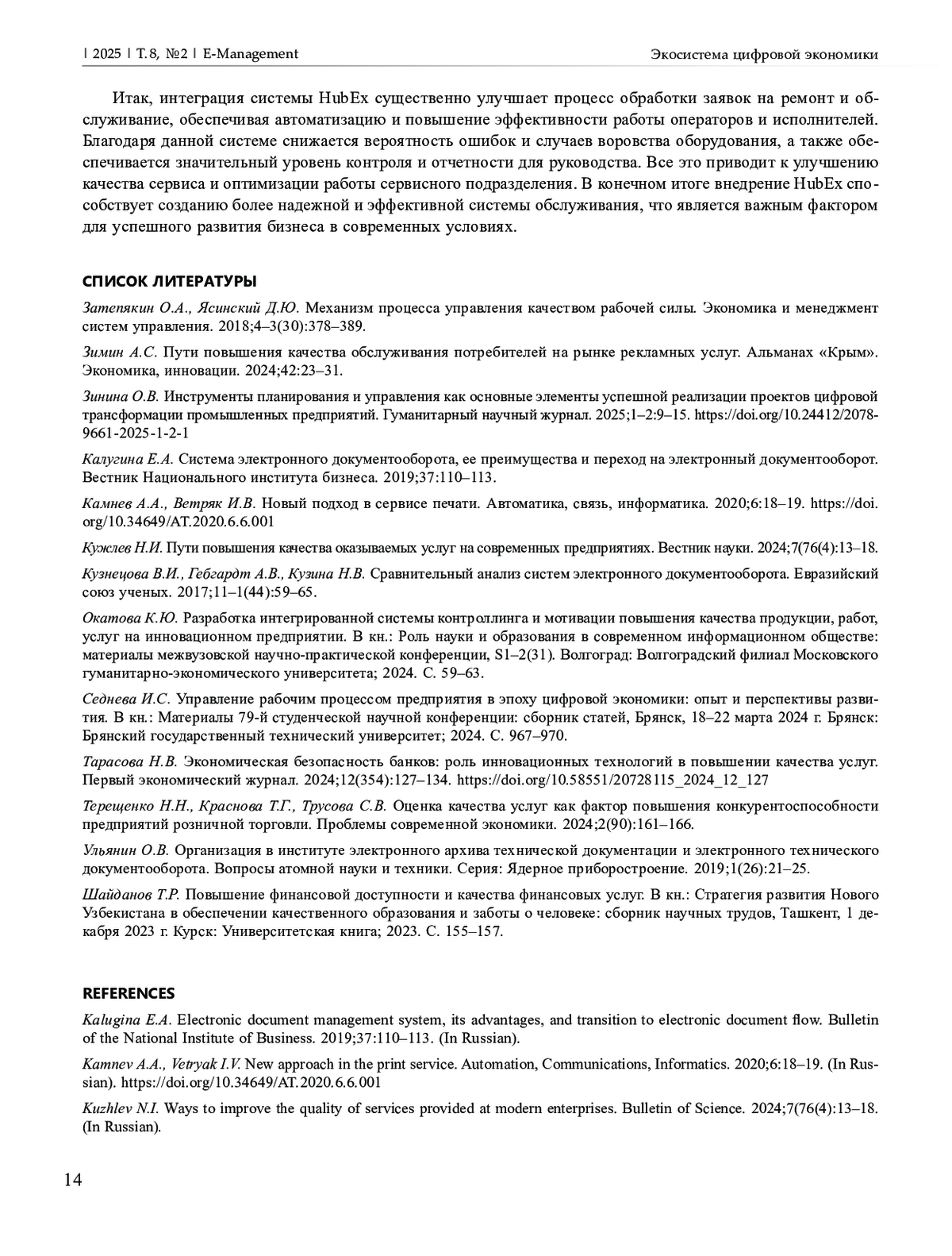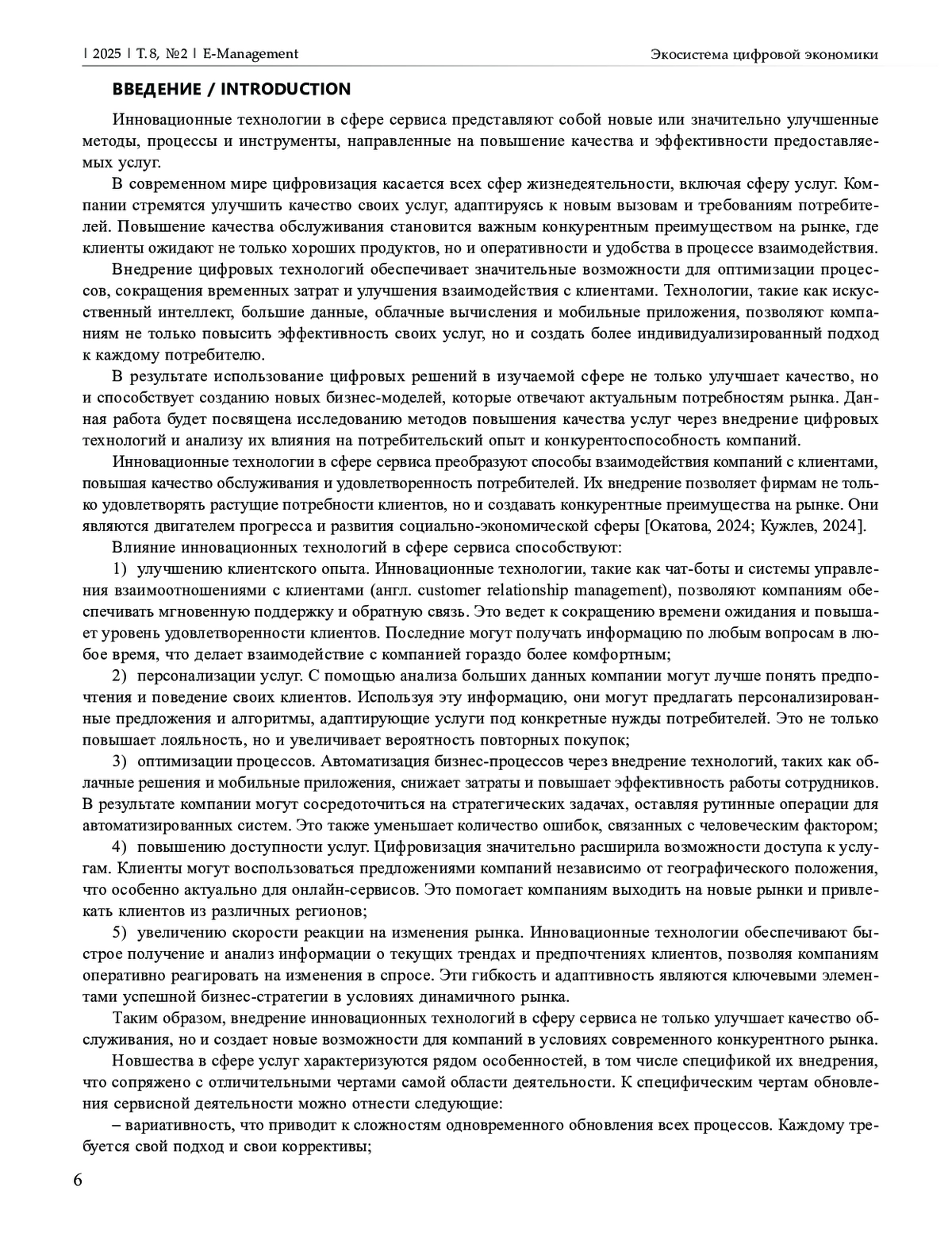 6. Кужлев Н.И. Пути повышения качества оказываемых услуг на современных предприятиях. Вестник науки. 2024;7(76(4):13-18.