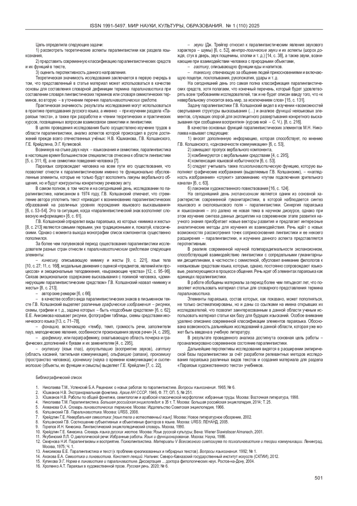16. 	Хроленко А.Т. Параязык в художественной прозе. Русская речь. 2020; № 6. EDN: OHJWXB