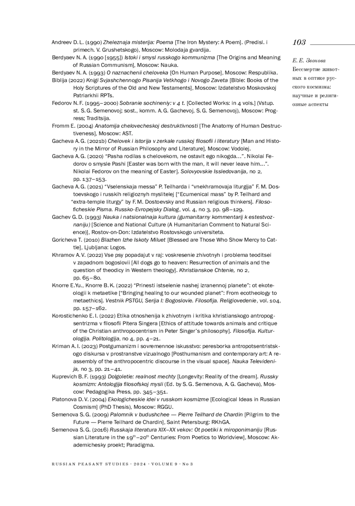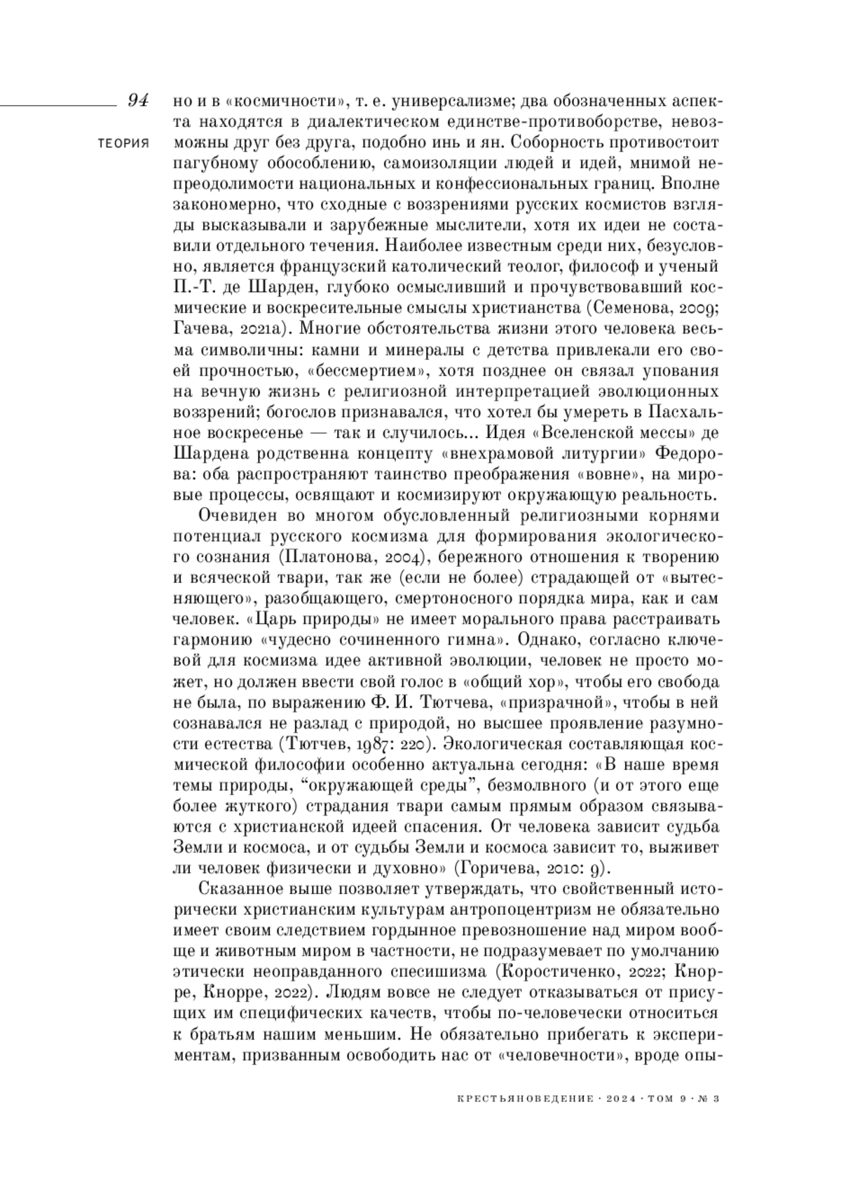 7. 	Гачева А. Г. (2021а). “Вселенская месса” П. Тейяра и “внехрамовая литургия” Ф. М. Достоевского и русских религиозных мыслителей // Философические письма. Русско-европейский диалог. Т. 4. № 3. С. 98-129.  EDN: NVVVMS