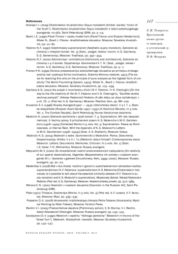10. 	Петрова Е. Н. (2021). Космизм в русском искусстве. СПб.: Государственный Русский музей, Palace Edition.