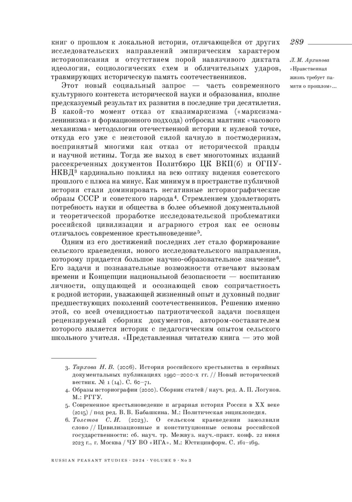 13. Тархова Н. В. (2006). История российского крестьянства в серийных документальных публикациях 1990-2000-х гг. // Новый исторический вестник. № 1 (14). С. 60-71.
