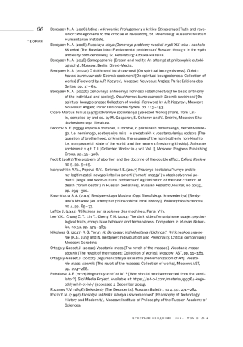 22. 	Кара-Мурза А. А. (2014). Бердяевская Москва (Опыт философского краеведения) // Философские науки. № 4. С. 65-77.  EDN: SHCZTX
