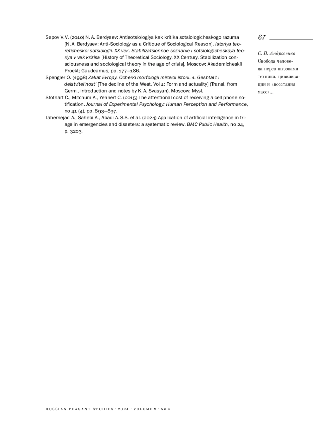 27. 	Сапов В. В. (2010). Н. А. Бердяев: Антисоциология как критика социологического разума // История теоретической социологии. XX век. Стабилизационное сознание и социологическая теория в век кризиса. Изд. 3-е, перераб. и доп. М.: Академический Проект; Гаудеамус. С. 177-186.
