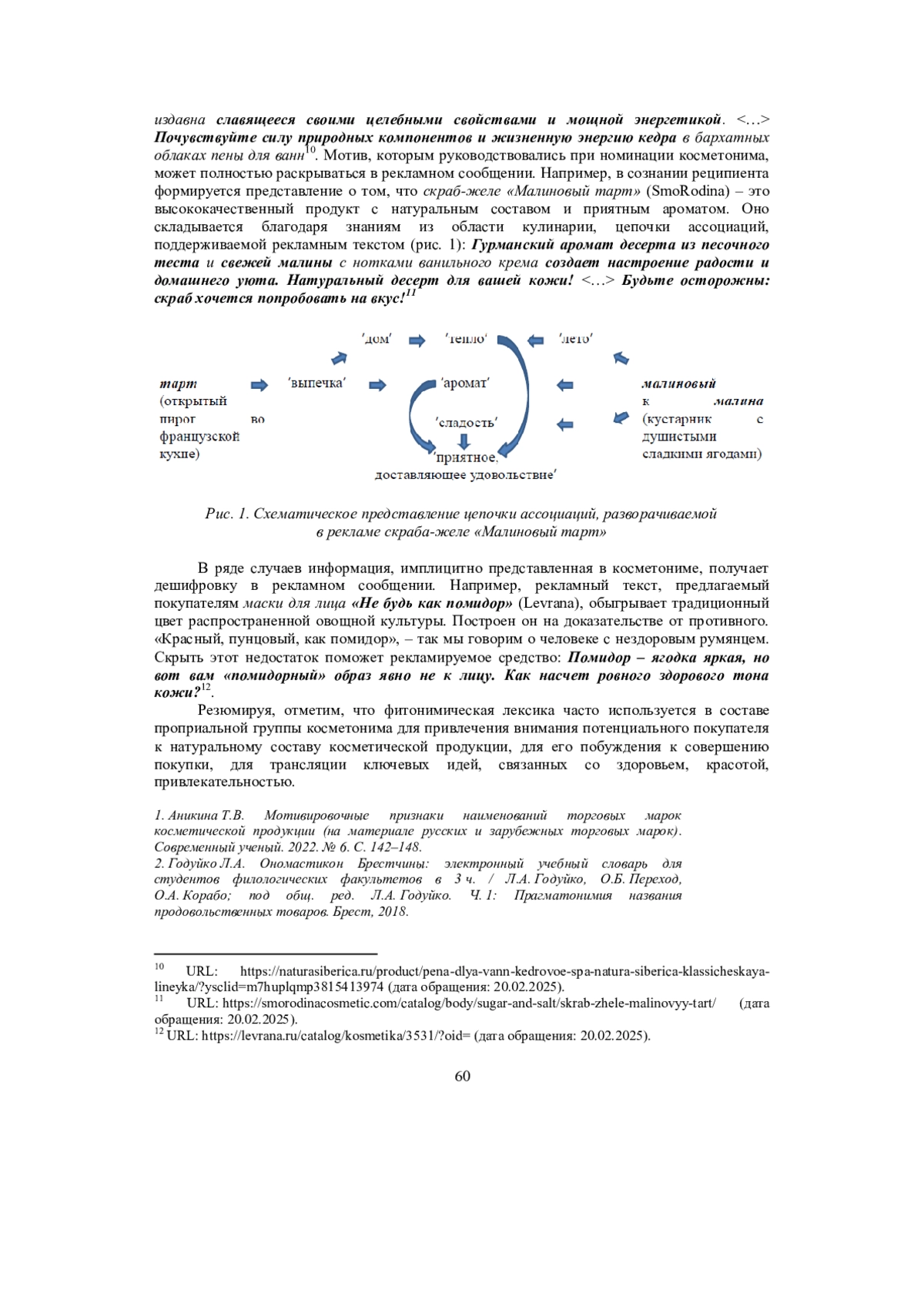 1. 	Аникина Т.В. Мотивировочные признаки наименований торговых марок косметической продукции (на материале русских и зарубежных торговых марок). Современный ученый. 2022. № 6. С. 142-148.