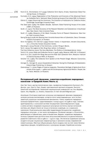 38. 	Novik D. S., Shcherbakov A. P. (1939) Collective Farm Kazris, Almaty: Kazakhstan State Publishing House. (In Russian).