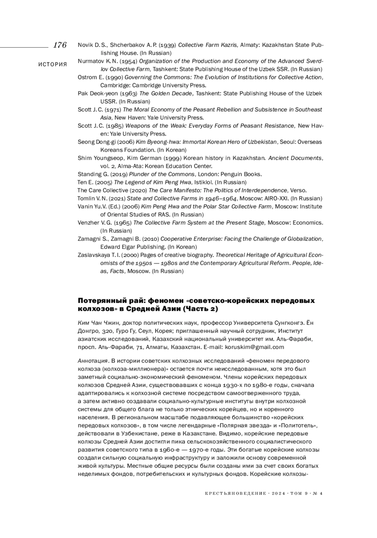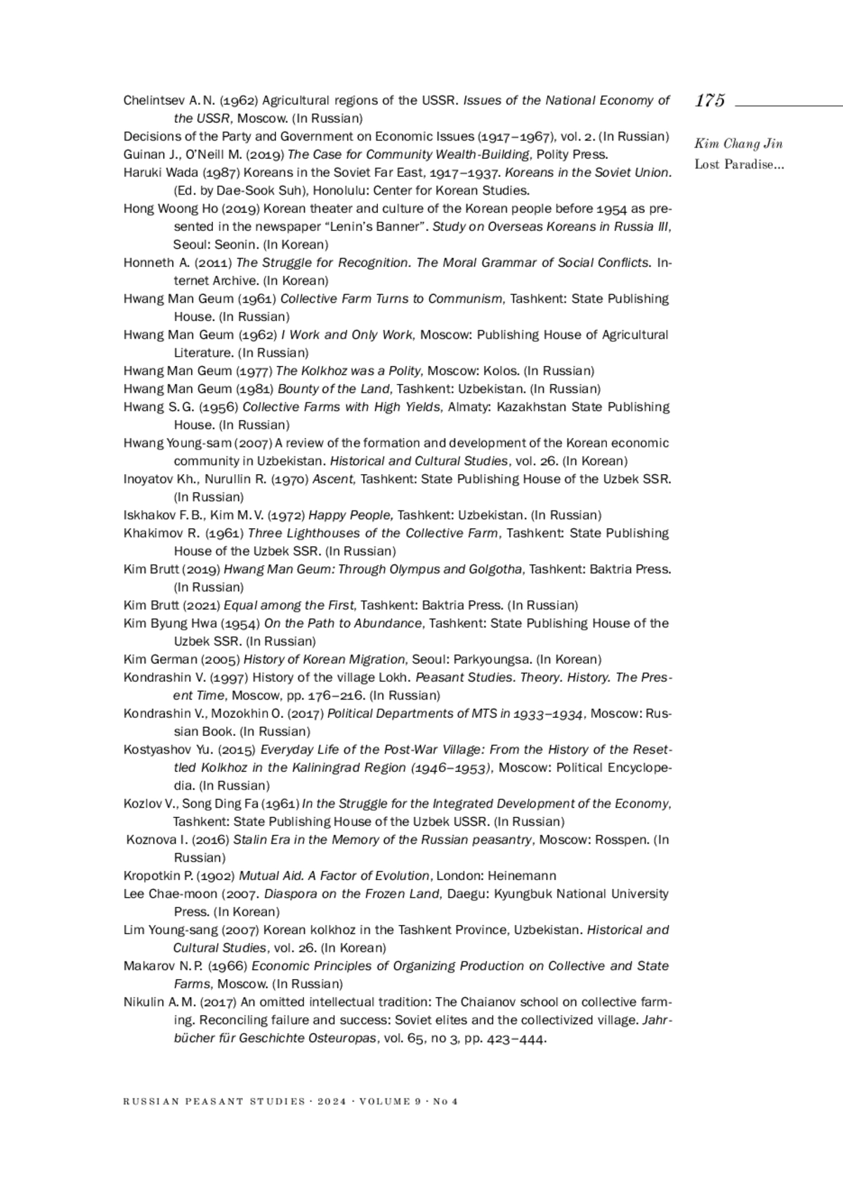 17. 	Hwang Man Geum (1977) The Kolkhoz was a Polity, Moscow: Kolos. (In Russian).