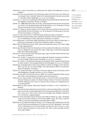 35. Kiselev S. N., Kiseleva N. V. (2024) Introduction. Section I: Administrative-territorial structure of Crimea. Atlas of Social-Cultural Processes in Crimea. URL: https://atlas-crimea.ru/all/razdel-1/vvedenie-i.