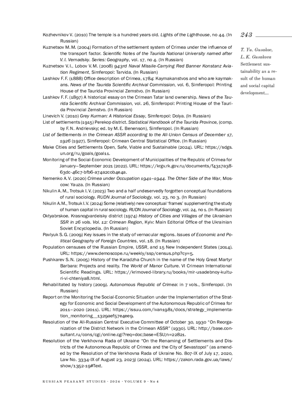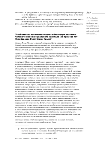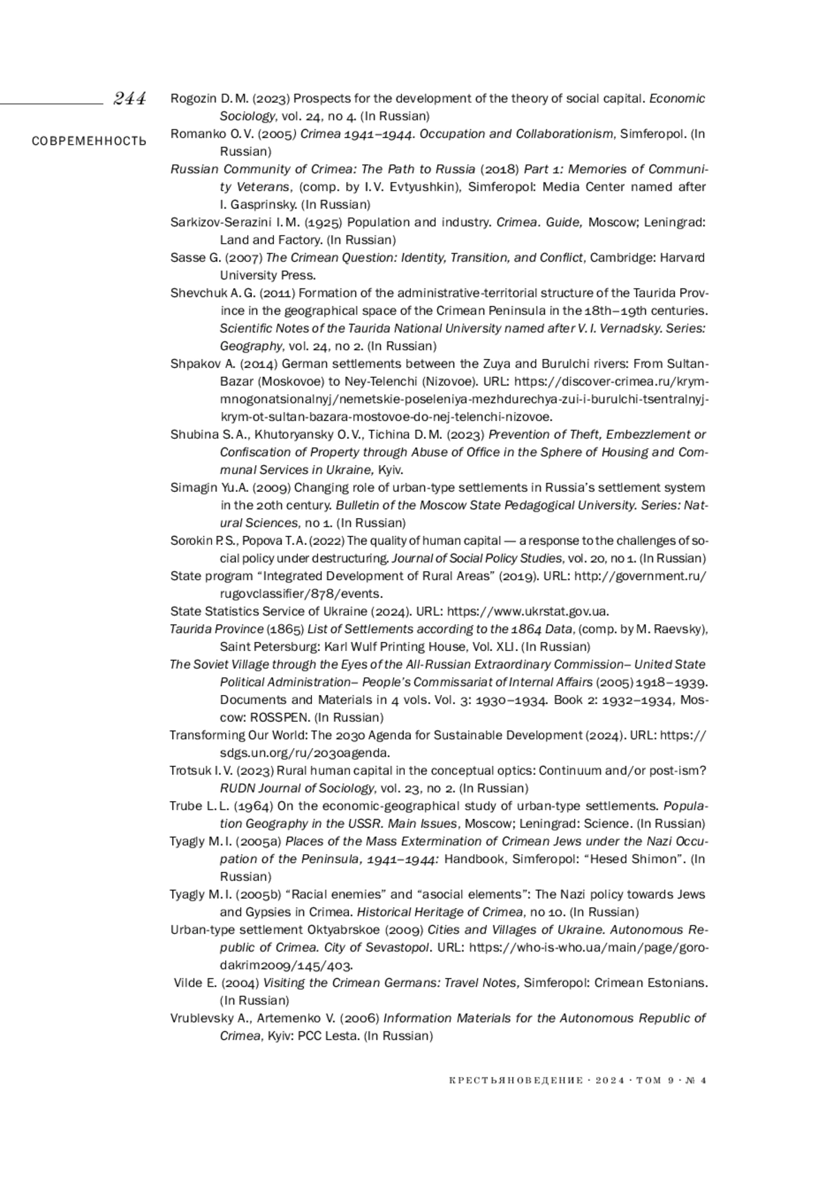 26. Gusakov T.Yu. (2017) Rural informal economy of the Crimean village Novoalekseevka, Russian Peasant Studies, vol. 2, no 4. (In Russian).