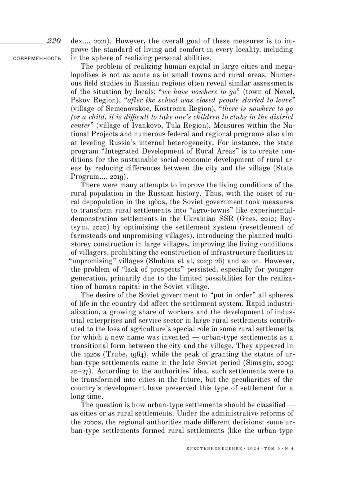 49. Nikulin A. M., Trotsuk I. V. (2024) Some (relatively) new conceptual ‘frames’ supplementing the study of human capital in rural sociology.RUDN Journal of Sociology, vol. 24, no 1. (In Russian).