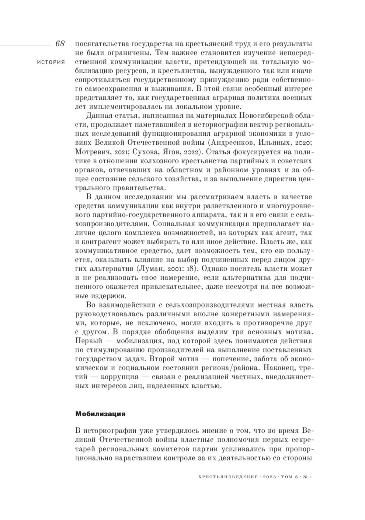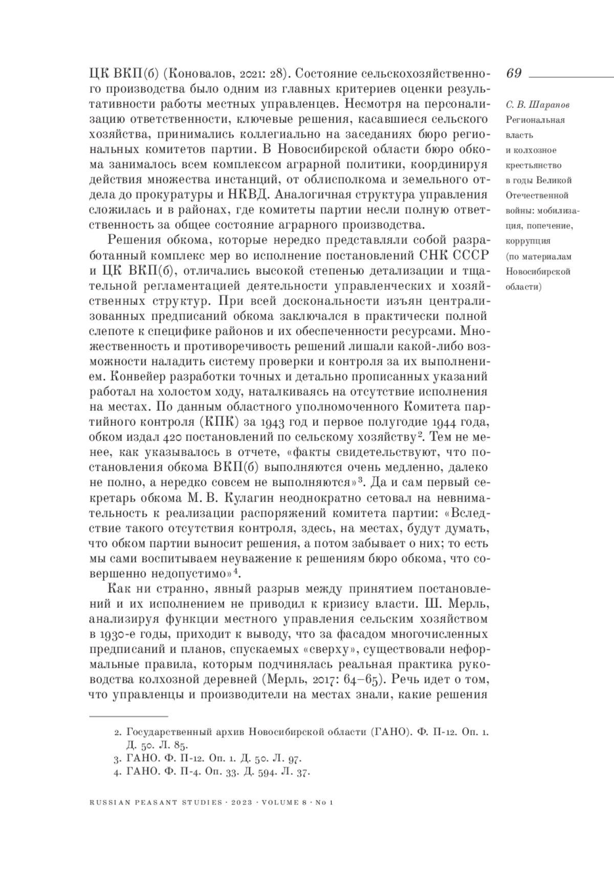 4. 	Мерль Ш. (2017). Формы местного управления в советской деревне накануне Великой Отечественной войны: критерии эффективности и коммуникативные практики предотвращения крестьянских бунтов // Крестьяноведение. Т. 2. № 2. С. 53-76.  EDN: ZCINFB
