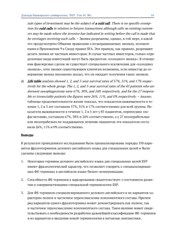 1. 	Хомутова Т. Н. Язык для специальных целей (LSP): лингвистический аспект // Известия Российского государственного педагогического университета им. А. И. Герцена. 2008. №71. С. 96-106. EDN: JVXXUD