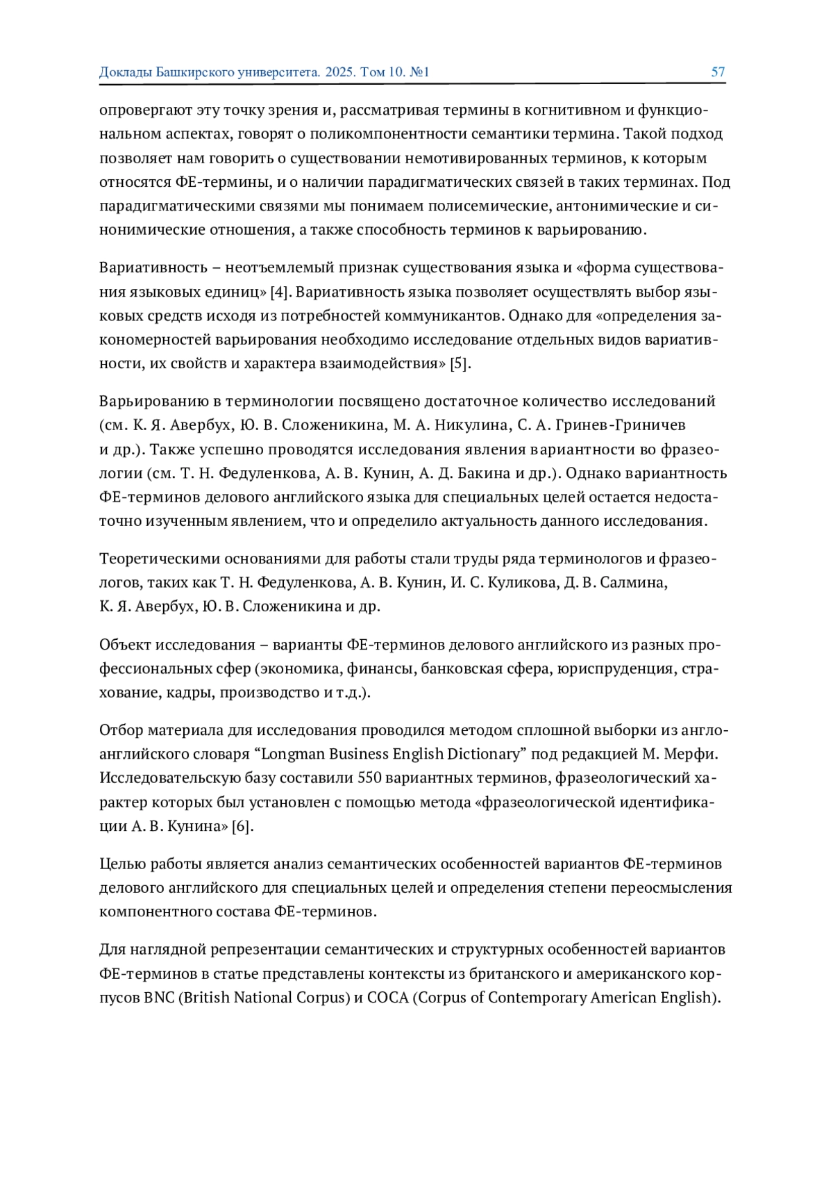 8. 	Fedulenkova T. N. Terminology vs phraseology: meaning transfer in business terms // Research Result. Theoretical and Applied Linguistics. 2022. No. 8(4). P. 41-56. 10.18413/2313-8912- 2022-8-4-0-4. DOI: 10.18413/2313-8912-2022-8-4-0-4 EDN: JCMNEP