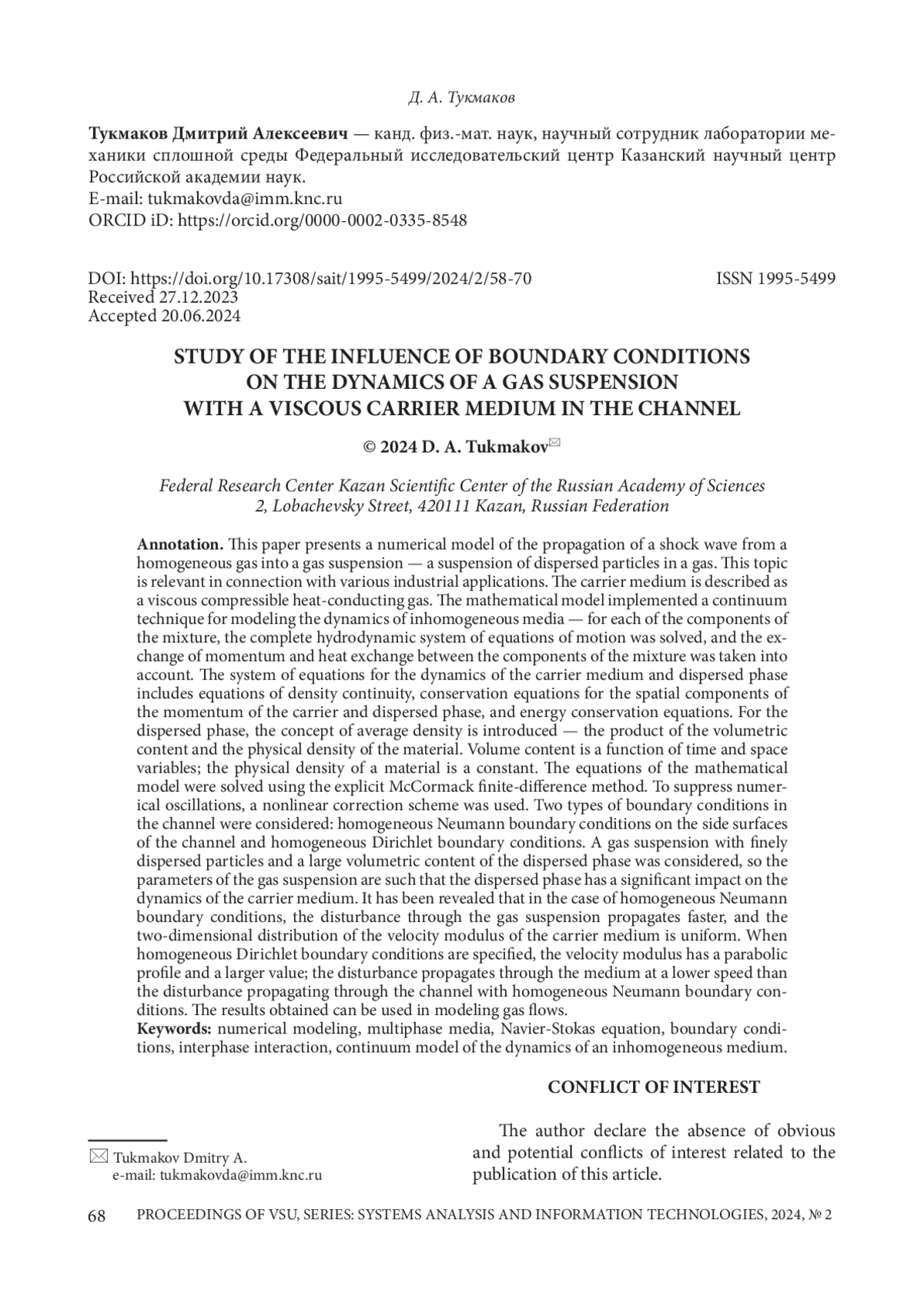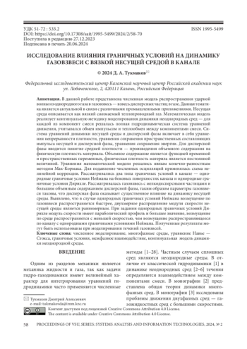 21. Тукмаков Д. А. Численное моделирование колебаний вязкого газа с дисперсными включениями с частотой первого линейного резонанса в закрытом канале / Д. А. Тукмаков // Известия высших учебных заведений. Поволжский регион. Физико-математические науки. - 2022. - Т. 63, № 3. - С. 58-71. EDN: EKFOBU