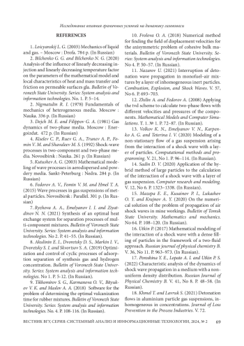 16. Уткин П. С. Математическое моделирование взаимодействия ударной волны с плотной засыпкой частиц в рамках двухжидкостного подхода / П. С. Уткин // Химическая физика. - 2017. - T. 36, № 11. - С. 61-71. EDN: ZQOCGB
