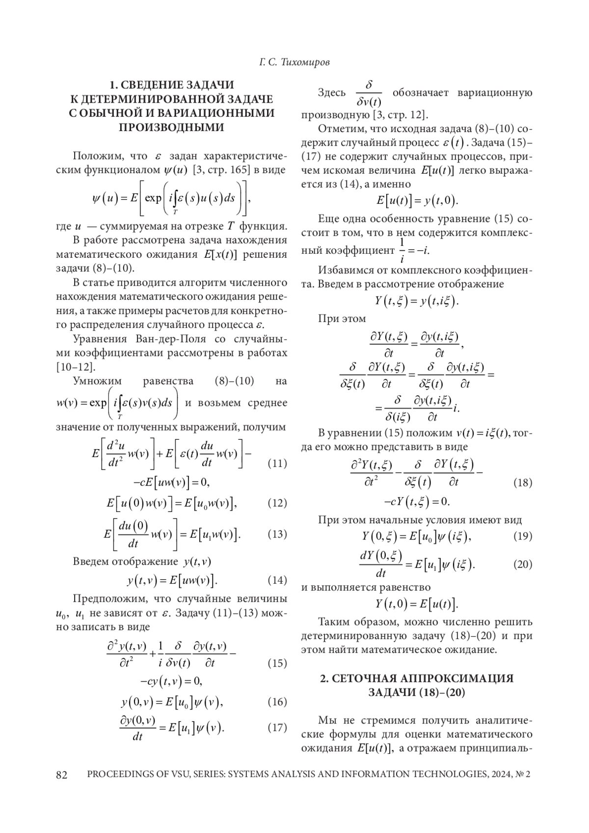 5. 	Задорожний В. Г., Тихомиров Г. С. О системе дифференциальных уравнений со случайными параметрами // Современная математика. Фундаментальные направления. - 2022. - Т. 68, № 4. - С. 621-634. EDN: OZSFRO