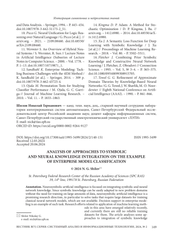 5. Shilov N. Machine learning for enterprise modeling assistance: an investigation of the potential and proof of concept / N. Shilov [et al.] // Software and Systems Modeling. - 2023. -Vol. 22. - P. 619-646. DOI: 10.1007/s10270-022-01077-y EDN: RFDQEY