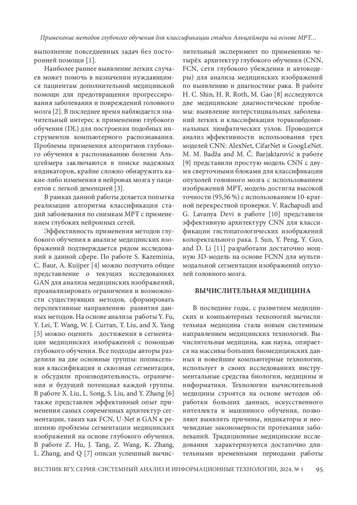 9. Badza M. M. and Barjaktarovic M. C. Classification of brain tumors from MRI images using a convolutional neural network // Applied Sciences. - 2020. - Vol. 10, No 6. - P. 1999. EDN: LPTQRP