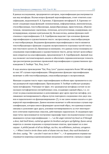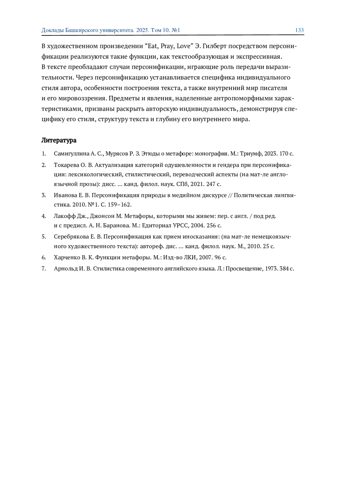 2. Токарева О. В. Актуализация категорий одушевленности и гендера при персонификации: лексикологический, стилистический, переводческий аспекты (на мат-ле англоязычной прозы): дисс. … канд. филол. наук. СПб, 2021. 247 с. EDN: VKIQWU