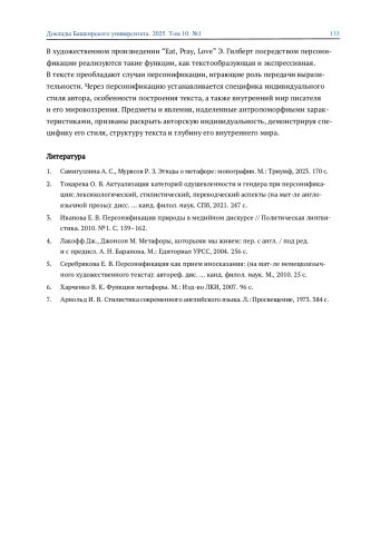 1. Самигуллина А. С., Мурясов Р. З. Этюды о метафоре: монография. М.: Триумф, 2023. 170 с. EDN: GBQQAV